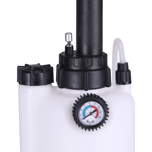 Przyrząd z jednej strony podłączany jest do sieci sprężonego powietrza, z drugiej do odpowietrznika układu hamulcowego. Wytworzone w zbiorniku podciśnienie sprawia, że płyn zostaje wyssany.