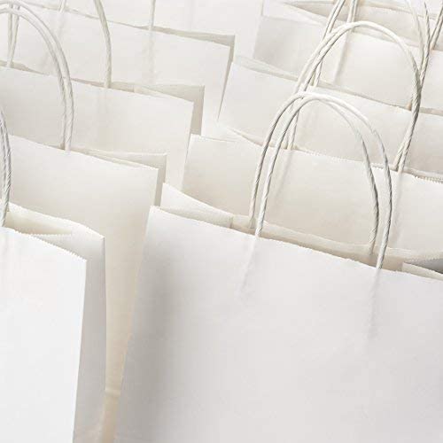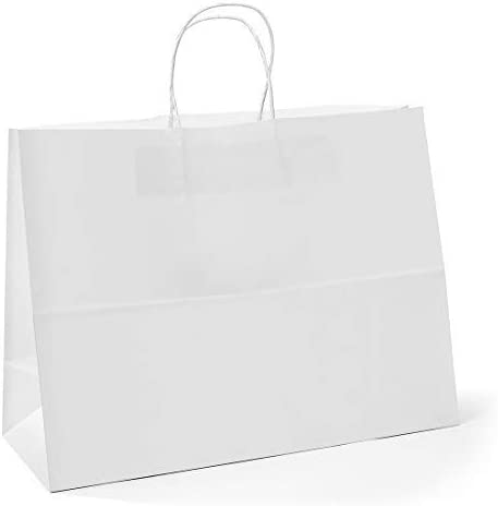 Białe, torebki z papieru typu kraft, wymiary 40,6 x 15 x 30,5 cm, 50 torebek. Świetnie nadaje się do zakupów detalicznych i detalicznych, torebek na prezenty lub toreb na prezenty. Może być również stosowany do gastronomii i na wynos. Te papierowe torebki z recyklingu nadają się idealnie do użytku biznesowego lub restauracyjnego. Torby papierowe typu kraft są popularnym wyborem wśród wielu sprzedawców detalicznych. Te wszystkie zastosowania, wysokiej jakości torebki papierowe typu kraft są wytrzymałe i łatwe do przenoszenia.