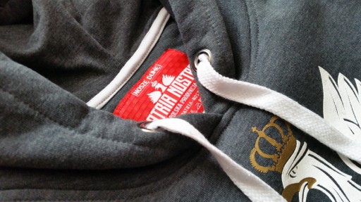 Bluza ozdobiona jest naszymi stałymi dodatkami w postaci firmowych żakardów oraz naszywki. Posiada przy tym swój unikalny, wykonany od podstaw krój. Sznurki do kaptura to biały kolor, kontrastujący z materiałem i akcentujący dodatkowo białego orła. Bluza uszyta została z najwyższej jakości materiałów od polskich dostawców.
