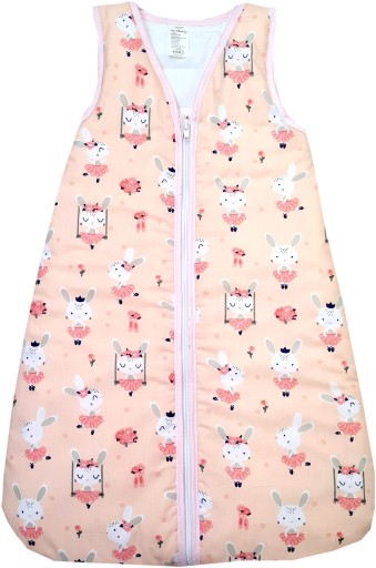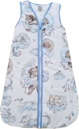 Śpiworek nie posiada rękawów, przez co nie nie krępuje ruchów dziecka i gwarantuje odpowiedni przewiew i higieniczne warunki snu.