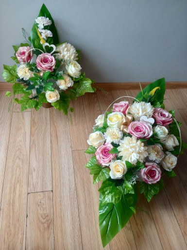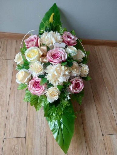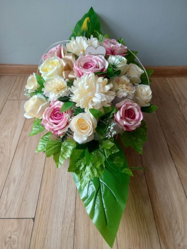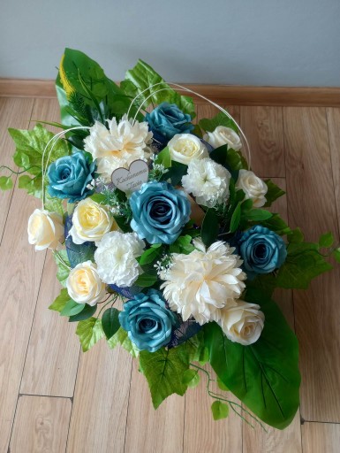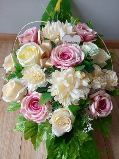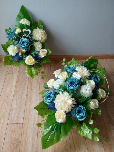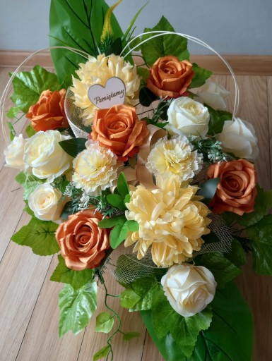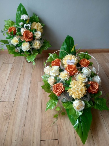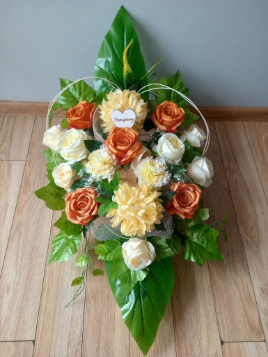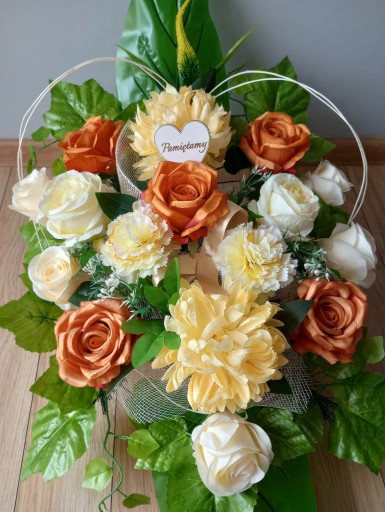 (cena dotycz TYLKO kompozycji do postawienia na grobie, natomiast bukiet do wazonu dostępny na innej aukcji)