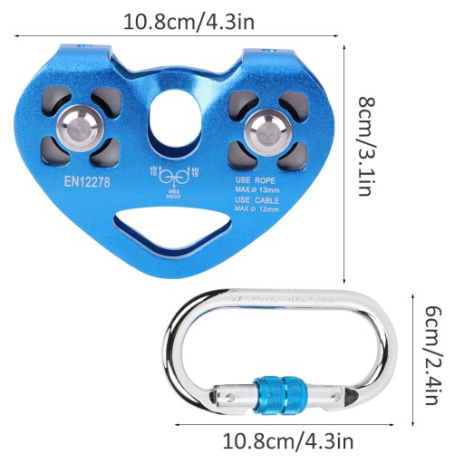 ✔️Podwójne koło pasowe z podwójnym wałem, odpowiednie dla maksymalnej średnicy liny 13 mm / 0,5 cala, maksymalna średnica liny stalowej 12 mm / 0,5 cala, nośność zrywająca 25 KN, maksymalne obciążenie robocze 10 KN.