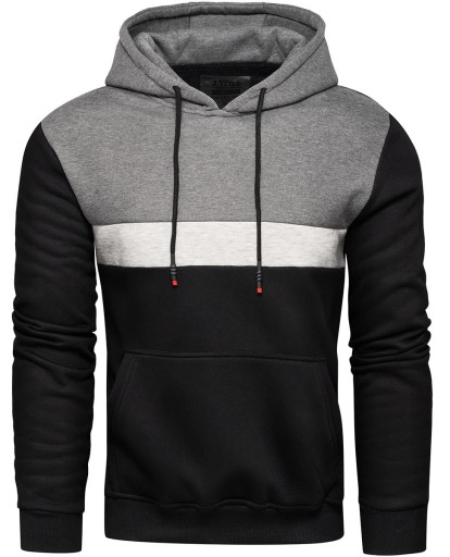 Bluza z kapturem - ta czarna męska bluza z kapturem jest w sam raz nie tylko na siłownię czy jogging ale też na co dzień. Bluza posiada kieszeń typu kangurka i ściągacz na dole i na rękawach. Bluza z kapturem posiada też ładnie połączone kolory. Skład materiału: 65% bawełna, 35% poliester.