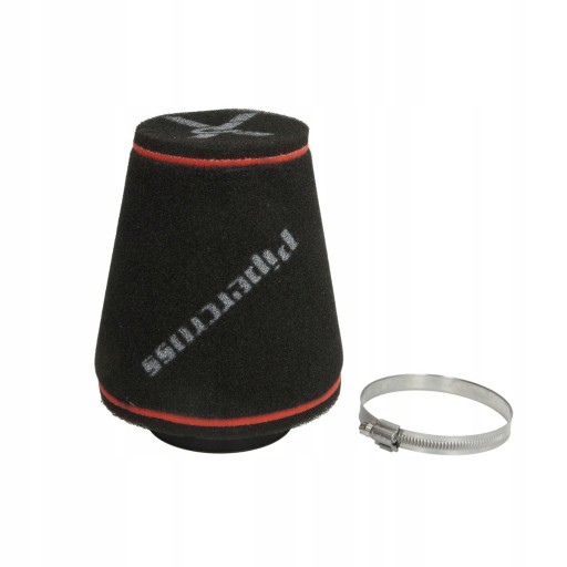 Stożkowe filtry powietrza PIPERCROSS zostały zaprojektowane tak, aby maksymalnie zwiększyć powierzchnię filtracyjną, a tym samym, zwiększyć ilość powietrza dostarczaną do silnika. Takie rozwiązanie daje możliwość podniesienia mocy Twojego pojazdu. Oferta producenta zawiera wiele rodzajów filtrów uniwersalnych o różnych kształtach i wymiarach, pozwala to na dobór filtra spełniającego indywidualne potrzeby każdego użytkownika. Filtry powietrza firmy PIPERCROSS są tworzone ze specjalnej gąbki o wyjątkowych właściwościach. Gąbka zastosowana w tych filtrach zatrzymuje dwa razy więcej zanieczyszczeń powietrza i wykazuje trzykrotnie wyższą żywotność niż papier lub bawełna stosowana w innych filtrach, przy zachowaniu stałego przepływu powietrza. Materiał filtracyjny PIPERCROSS to poliuretanowa gąbka tworzona według unikalnej technologii. Do budowy filtra wykorzystuje się kilka warstw takiej gąbki a każda z nich charakteryzuje się inna porowatością mierzoną w porach na cal (PPI) oraz ich różną wielkością. Filtry są zaprojektowane tak, aby każda z warstw zatrzymywała zanieczyszczenia o innej wielkości. Wielkość porów zmniejsza się zgodnie z kierunkiem przepływu powietrza, zapewniając ochronę silnika na najwyższym poziomie jednocześnie nie ograniczając ilości powietrza dostarczanego do komory spalania. Filtry uniwersalne są fabrycznie filtrami suchymi. Można opcjonalnie samodzielnie nasączyć je specjalnymi olejkami marki PIPERCROSS.