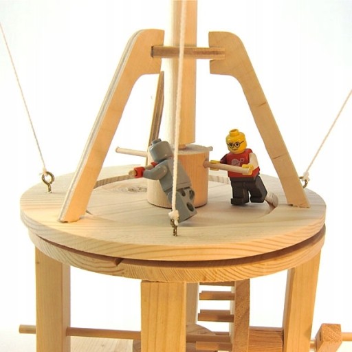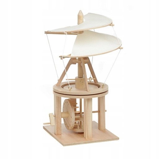 Leonardo da Vinci projektując swoją Powietrzną Śrubę, którą obecnie możemy nazwć helikopterem chciał aby całą machinę wprawiała w ruch siła czterech mężczyzn. Prezentowany model został tak przeskalowany, że po złożeniu dziecko może wykorzystywać do zabawy typowe ludziki z klocków Lego. Wielkość modelu po złożeniu to 38x23 cm.