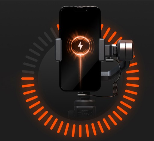 【Ładowanie telefonu】 Stabilizator gimbala ma wbudowaną baterię 2600 mAh, która może wytrzymać do 18 godzin ciągłego użytkowania. Obsługuje funkcję ładowania wstecznego, która umożliwia ładowanie smartfona przez port wyjściowy na gimbalu podczas nagrywania wideo, bez obaw o niski poziom naładowania baterii.