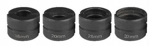 - W zestawie dostępne są 4 matryce zaciskające typu TH o następujących rozmiarach: 16, 20, 26, 32mm.