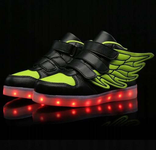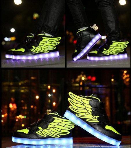 Świecące buty led, 7 kolorów podświetlenia i 4 tryby świecenia przełączane jednym guzikiem.