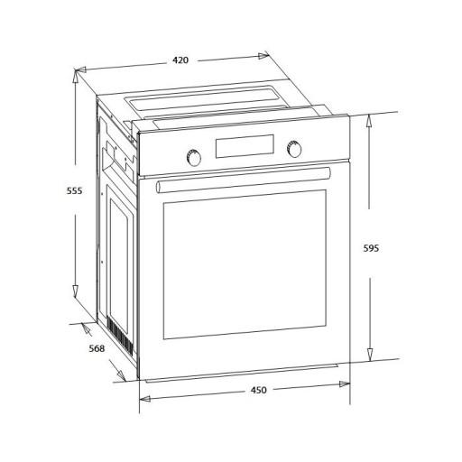 - szerokość 45 cm, wysokość 59,5 cm, głębokość 56,8 cm
