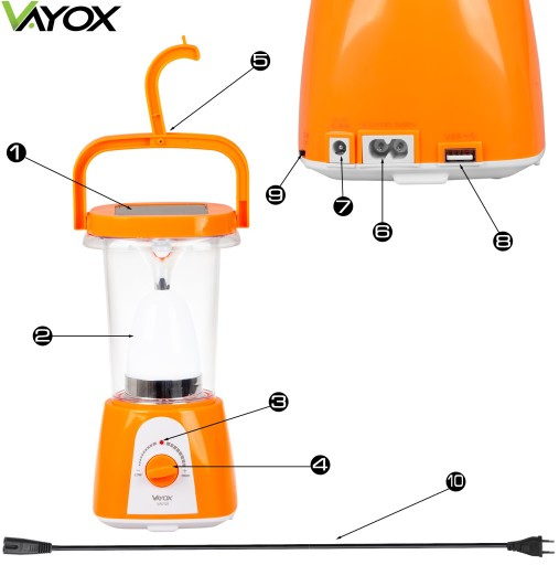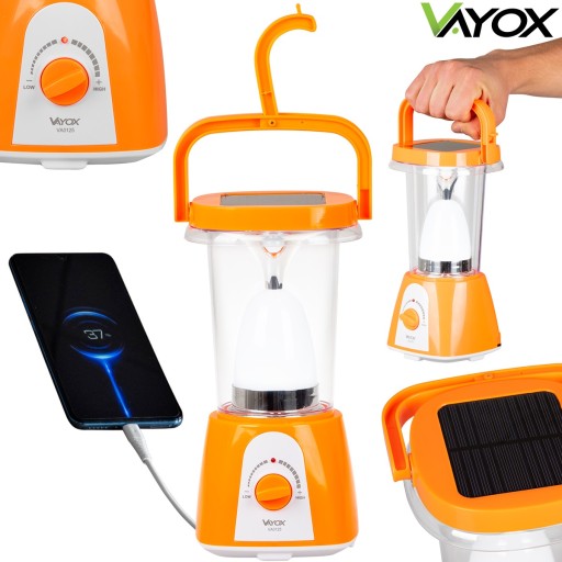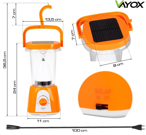LATARKA KEMPINGOWA LAMPA SOLAR LED AKU 230V VAYOX