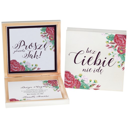 Ślub w życiu człowieka to bardzo ważne wydarzenie, warto w tym dniu mieć przy sobie osobę zaufaną, na którą zawsze można liczyć, idealną świadkową lub świadka. Warto w tym wypadku przygotować niespodziankę przyszłym świadkom i zaskoczyć ich pytaniem w oryginalny sposób! Nasze drewniane pudełeczko z grawerem to najlepszy prezent z prośbą o świadkowanie. To elegancki, stylowy, a jednocześnie niezwykle kreatywny i pomysłowy upominek. Zapewniamy, że będzie miłym zaskoczeniem dla obdarowanego i bez wahania odpowie twierdząco na zadane przez Ciebie pytanie. Szczególnie, że nasz pomysł na prezent z prośbą o świadkowanie ma możliwość personalizacji, co utwierdzi go w wyjątkowości podarunku. Pudełko drewniane - wymiar: 14,5 x 14,5 cm. Kolor pudełka - naturalny lub białym. Wewnątrz zaproszenie na papierze o wysokiej gramaturze.