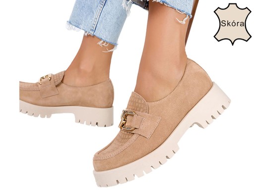 MOKASYNY DAMSKIE SKÓRZANE PÓŁBUTY PLATFORMA MODNE