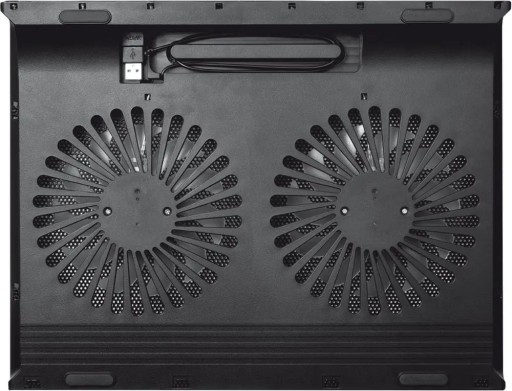 Podstawka chłodząca do laptopa, z 2 podświetlanymi na niebiesko wentylatorami — zapewnia komfort pisania oraz lepsze chłodzenie komputera- 2 wentylatory zasilane przez złącze USB zapewniają skuteczne chłodzenie- Atrakcyjne niebieskie podświetlenie- Duża powierzchnia (360 × 280 mm) do umieszczenia laptopa o przekątnej do 17,3”- Chroni laptopa przed przegrzaniem- Płyta górna z metalowej siatki zapewnia optymalny przepływ powietrza- Nachylona podstawa ułatwia pisanie na klawiaturze- Zintegrowane miejsce na kabel- Dodatkowy port USB