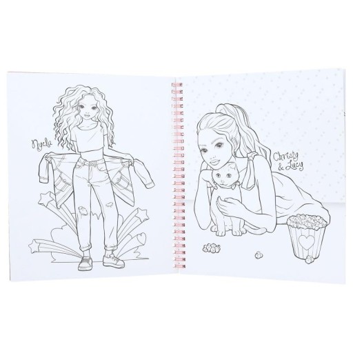 Szkicownik z pluszowym kotkiem TOP Model, zawiera 20 stron: do kolorowania postaci z kotkami oraz 1 stronę naklejek.