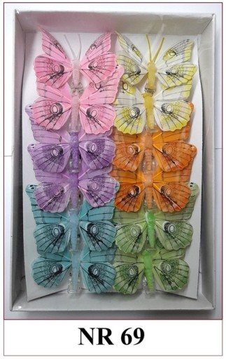 - Motyle są sprzedawane w kompletach po 12 sztuk jednego wzoru w różnych kolorach (jak na zdjęciu).