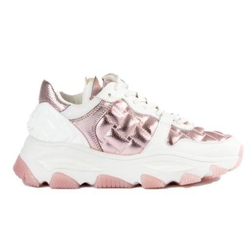 Sneakersy damskie marki Kurt Geiger to połączenie stylu i komfortu w jednym. Różowe detale o metalicznym połysku wyraźnie nadają im wyjątkowego uroku i atrakcyjności wizualnej. Platforma zapewnia nie tylko modny wygląd, ale także dodatkowe podwyższenie i amortyzację. Ich nowoczesny design jest znaczącym wyróżnikiem. Wnętrze sneakersów, starannie wykończone skórzaną wkładką, zapewnia wygodę i komfort użytkowania. Charakterystyczna dla marki głowa orła umieszczona z tyłu butów nadaje im indywidualności.