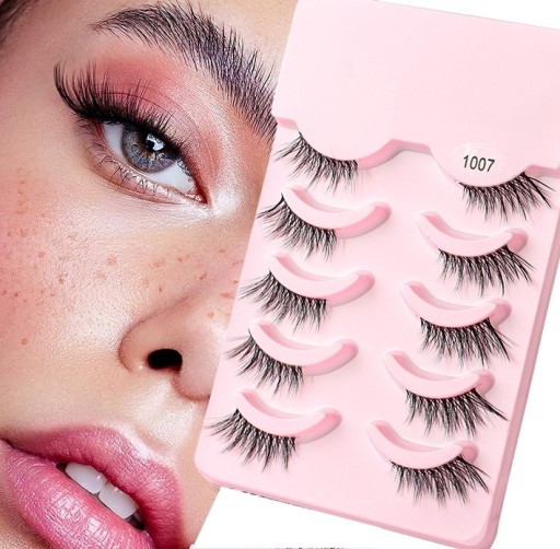 SZTUCZNE RZĘSY POŁÓWKI Z BEZBARWNYM PASKIEM - ZESTAW 5 PAR 1007 ⭐⭐⭐⭐⭐