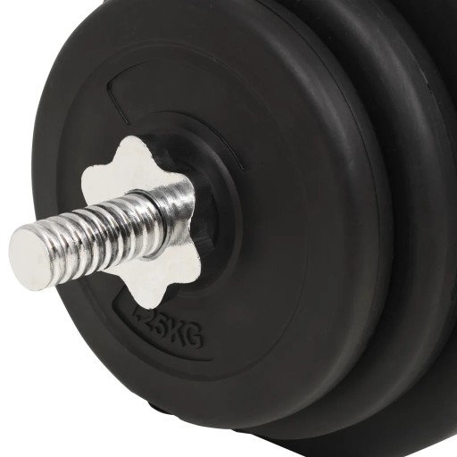 Wszechstronny zestaw sztangi i hantli jest idealny do ćwiczeń klatki piersiowej, bicepsów, ramion, tricepsów i mięśni pleców. Obejmuje dwa obciążenia o wadze 5 kg, cztery o wadze 2 kg, cztery o wadze 1,25 kg, jeden gryf sztangi i dwa gryfy hantli o łącznej wadze około 30 kg.