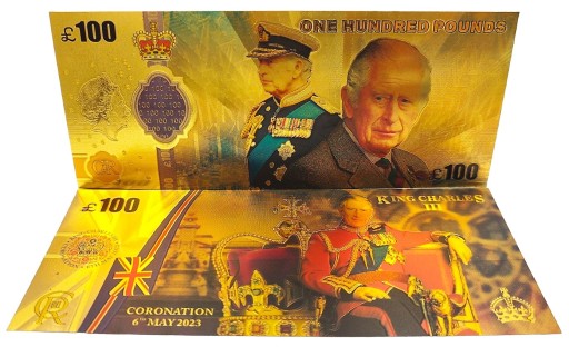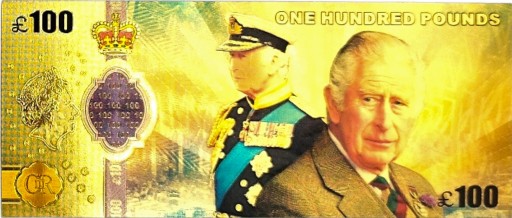 KRÓL KAROL III Pozłacany Banknot 100 Funtów