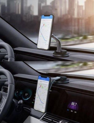 Niezawodna przyczepność Mocuje się bezpiecznie do płaskiej powierzchni na desce rozdzielczej. Posiada również dodatkową podkładkę do naklejek na lekko zakrzywione lub nierówne powierzchnie. <span>Super mocna przyssawka próżniowa ma warstwę lepkiego żelu i dźwignię blokującą, która może zmaksymalizować stabilność i utrzymać uchwyt na miejscu.</span>