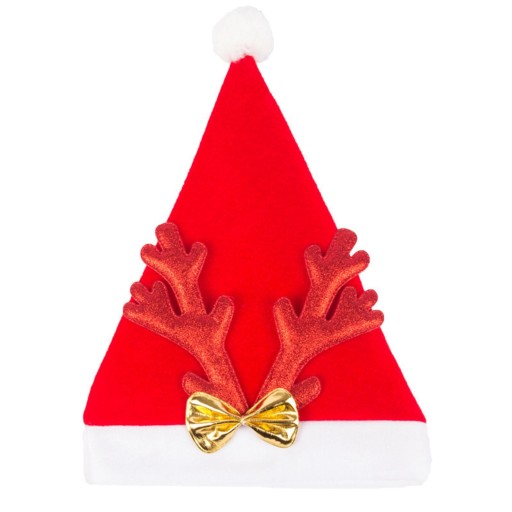 Czapka bożonarodzeniowa: kreatywny design, z porożem i złotą kokardką, nowość i piękna.