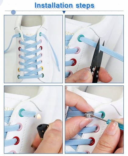 Zapasowy zestaw metalowych końcówek do elastycznych sznurowadeł do butów.