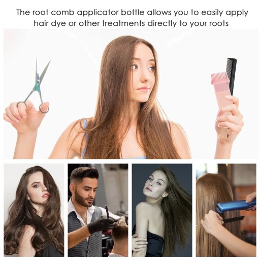 Butelka z aplikatorem grzebieniowym umożliwia łatwe nakładanie farby do włosów lub innych zabiegów bezpośrednio na korzenie