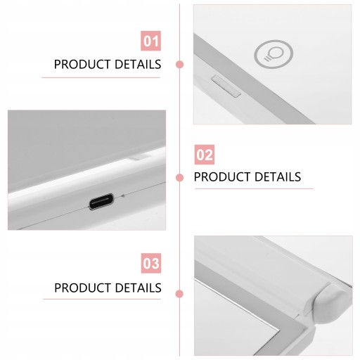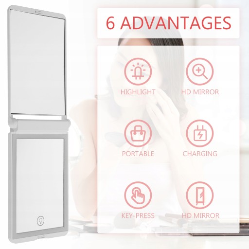 Wykonane z najwyższej jakości materiału, trwałe i praktyczne w użyciu. Lusterko do makijażu jest mocne i trwałe, ma długą żywotność. To lusterko do makijażu można postawić na stole. Ze światłem LED, praktyczne w użyciu. Rozświetli Twoje piękno i pozwala zobaczyć, jak twój makijaż wygląda lepiej w porównaniu ze zwykłym lustrem.