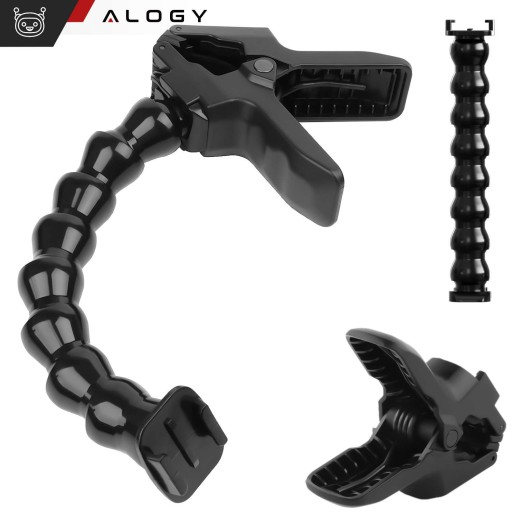▶️ Uchwyt statyw wysięgnik giętki Alogy 2w1 do kamery sportowej GoPro klips do Blatu biurka poręczy roweru Mocowanie Czarny