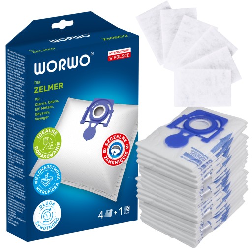 Worki z mikro włókniny syntetycznej oraz filtry ochronne silnika przeznaczone do odkurzaczy marki ZELMER