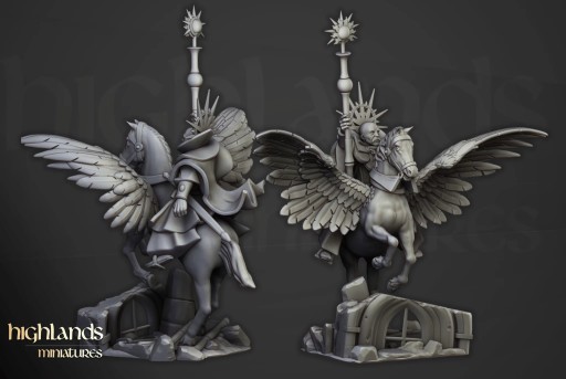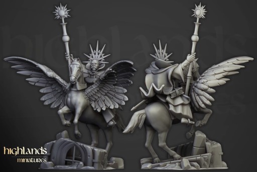 Oferujemy jedną figurkę Wizard on Pegasus (Wizard on Pegasus autorstwa Highland Miniatures), wydrukowaną na drukarce żywicznej.