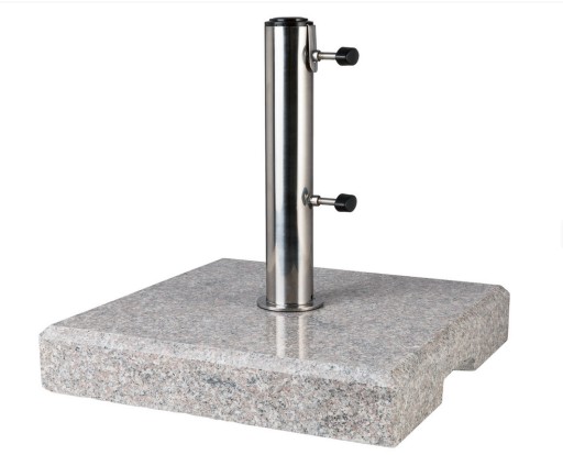 Solidna granitowa podstawa o masie 28 kg, nadaje się do parasoli o średnicy do 1,8 metra. Rurka nośna ze stali nierdzewnej nadaje się do drążków parasolowych o średnicy Ø 2,5 / 3,2 / 3,8 / 4,8 cm.