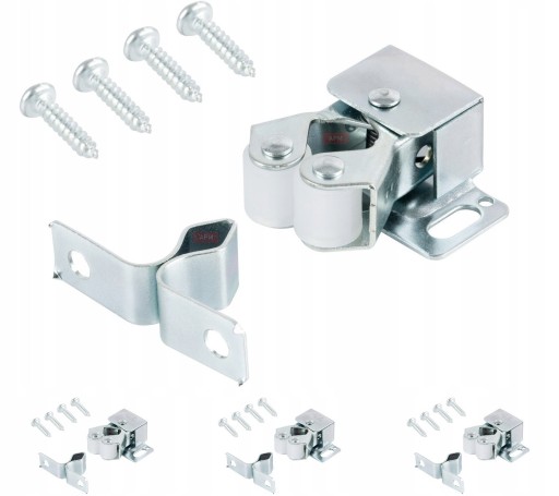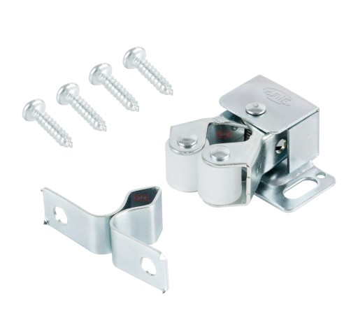 Zatrzask rolkowy idealnie pasuje wszędzie tam, gdzie występuje problem z otwierającymi bądź nie domykającymi się drzwiami. Jego zadaniem jest przytwierdzenie frontu szafki do jej korpusu w pozycji zamkniętej.