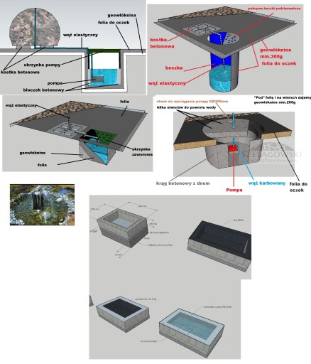 - wymurować zbiornik, wyłożyć folią epdm do oczek wodnych na wierzch kratownice wema.