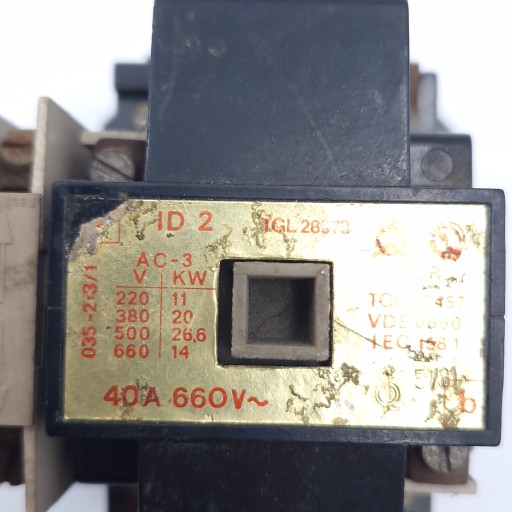 Stycznik używany, niekompletny- brak 3 styków i 1 styku pomocniczego.