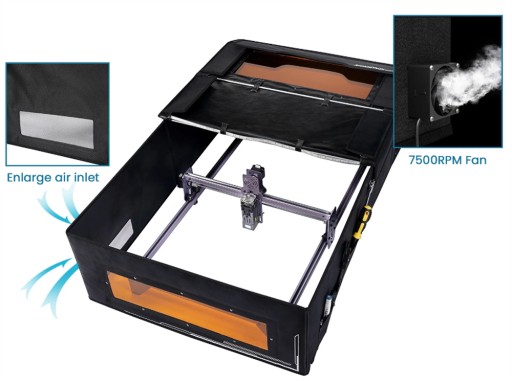Nie musisz się już znajdować w miejscu pracy wycinarki laserowej, osłony ochronnej i oczyszczacza powietrza z Atomstack Maker, nie musisz się o oddymianie i kontrolowane powietrze, możesz mieć bezpieczne je w swoim domu garaż, piwnica lub warsztat.