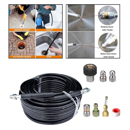 [Wielofunkcyjny]: zestaw do czyszczenia kanalizacji usuwa blokady bez potrzeby. Idealny do wszystkich rodzajów zastosowań wymagających średniego i wysokiego ciśnienia, takich jak rury kanalizacyjne i kanalizacyjne.