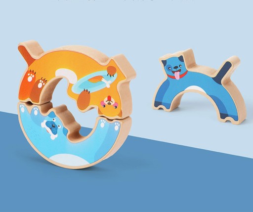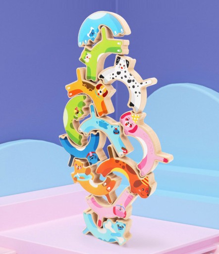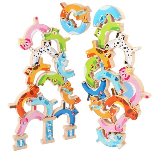 Każdy piesek posiada inne kształty i miejsca łączeń klocków. Dziecko musi zastanowić się jak je prawidłowo ułożyć aby utworzyć z nich nierozpadającą się wieżę!