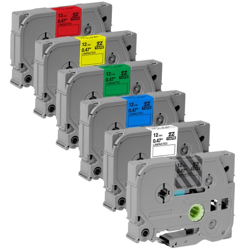 Zestaw 6 kolorów taśmy laminowana do drukarek Brother P-touch 12mm