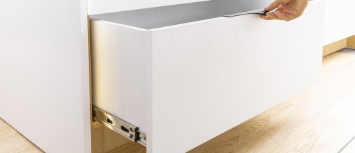 Uniwersalna prowadnica kulkowa przystosowana zarówno do budowy szuflad standardowych, jak i wewnętrznych. H45 PRO wykonana jest z wysokiej jakości materiału, o grubości 1,2x1,2x1,5 mm. Posiada łożyska 3-kulowe. Jej mocną strona jest duży udźwig – do 50 kg. Z powodzeniem możemy zastosować ją w kuchni do przechowywania małego AGD, słoików, butelek i zapasów żywności. Sprawdzi się także do szuflad przeznaczonych na cięższe przedmioty, np. narzędzia warsztatowe. Możliwości aranżacyjne i duża wytrzymałość czynią z H45 Pro produkt dla wymagających. Prowadnica wyposażona jest w wysokiej jakości system zwiększający ergonomię – mechanizm pełnego wysuwu, który umożliwia całkowite wysunięcie szuflady, by swobodnie sięgnąć po głębiej schowane rzeczy. Wysokiej jakości materiały zapewniają wieloletnie, bezpieczne użytkowanie i odporność na uszkodzenia. Wykonana ze stali pokrytej powłoką cynkową zabezpieczającą przed korozją,. Produkt posiada również opcje wypięcia prowadnika z prowadnicy.