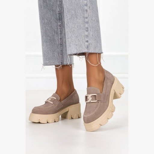 MOKASYNY DAMSKIE SKÓRZANE NA SŁUPKU Z ŁAŃCUCHEM 39