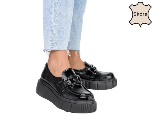 PÓŁBUTY DAMSKIE LAKIEROWANE SKÓRZANE PLATFORMA 39