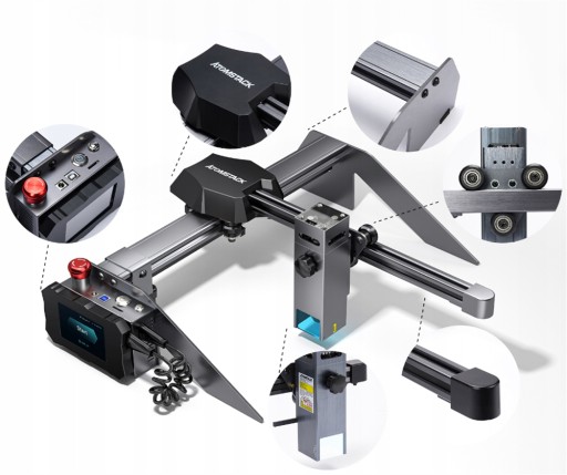 - Zawiera potężny 32-bitowy układ: laserowa grawerka Atomstack P9 M50 o mocy maszyny 50 W i mocy wyjściowej modułu lasera 10 W.