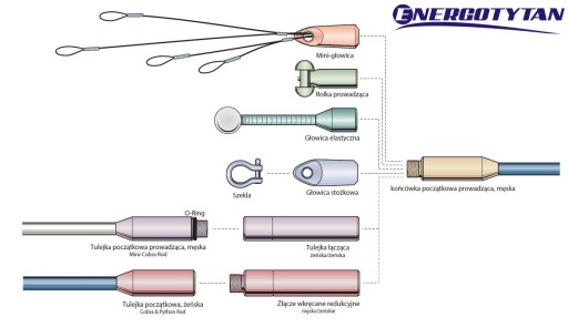 - Włókno posiada innowacyjne zakończenie ułatwiające przeciąganie kabli i przewodów / końcówka włókna zakończona jest głowicą prowadzącą