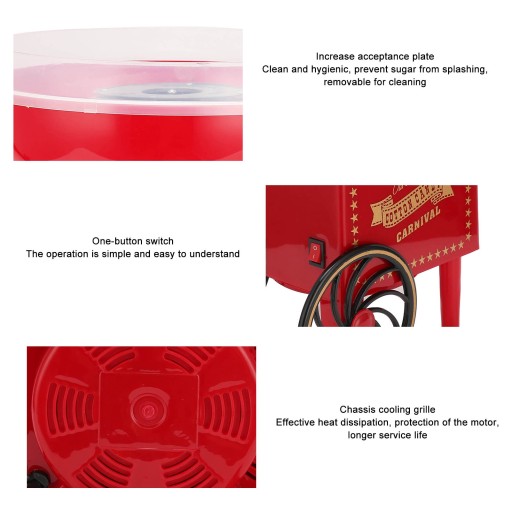2. Wysokowydajny silnik o mocy 500 W potrzebuje tylko kilku minut, aby szybko się nagrzać i zrobić watę cukrową.