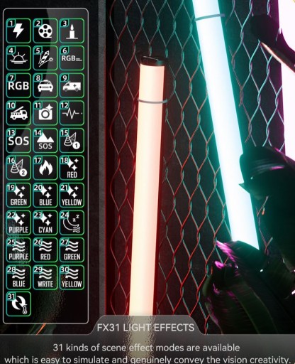 Yongnuo YN60 Soft - RGB, WB (2000 K - 10000 K) to wielozadaniowa lampa LED w kształcie tuby. Urządzenie świetnie sprawdzi się w fotografii produktowej, vlogach, transmisjach live oraz podczas malowania światłem. Ten unikalny miecz świetlny oferuje szeroki zakres regulacji temperatury barwowej światła (od 2000 K do 10000 K) oraz pozwala uzyskać aż 36 tysięcy różnych kolorów dostępnych w ramach przestrzeni barw HSI. Twórcy video z pewnością docenią 31 predefiniowanych efektów specjalnych. Dołączony do zestawu uchwyt montażowy pozwoli wygodnie połączyć urządzenie z gwintem 1/4". Model YN60 Soft posiada również wsparcie bezpłatnej aplikacji mobilnej YONGNUO (iOS/Android), która umożliwi zdalne sterowanie oraz pracę w obrębie większego zestawu lamp.