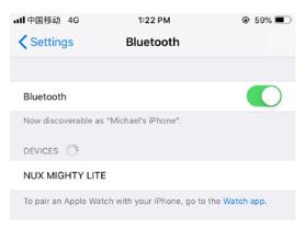 2. Wejdź w ustawienia Bluetooth na swoim smartfonie i znajdź urządzenie, np. NUX Mighty Lite, kliknij i połącz się z nim.