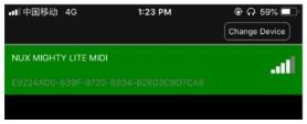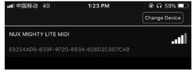 3. Kiedy już połączysz się z urządzeniem, włącz aplikację Mighty App, wejdź w ustawienia, znajdź urządzenie o nazwie „NUX Mighty Lite Midi”, kliknij i połącz się z nim.