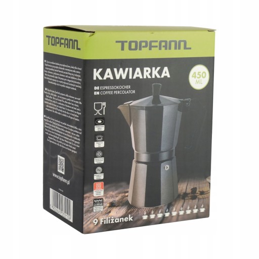 KAWIARKA DUŻA 9 FILIŻANEK CZARNA TOPFANN 450ML