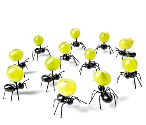 12 pracowitych mrówek nada imprezie wyjątkową otoczkę. Świetnie i bardzo oryginalnie prezentują się na talerzu, stole czy tacy, a przy okazji pomagają bardzo praktycznie podać mniej lub bardziej wyszukane przekąski, koreczki czy owoce.